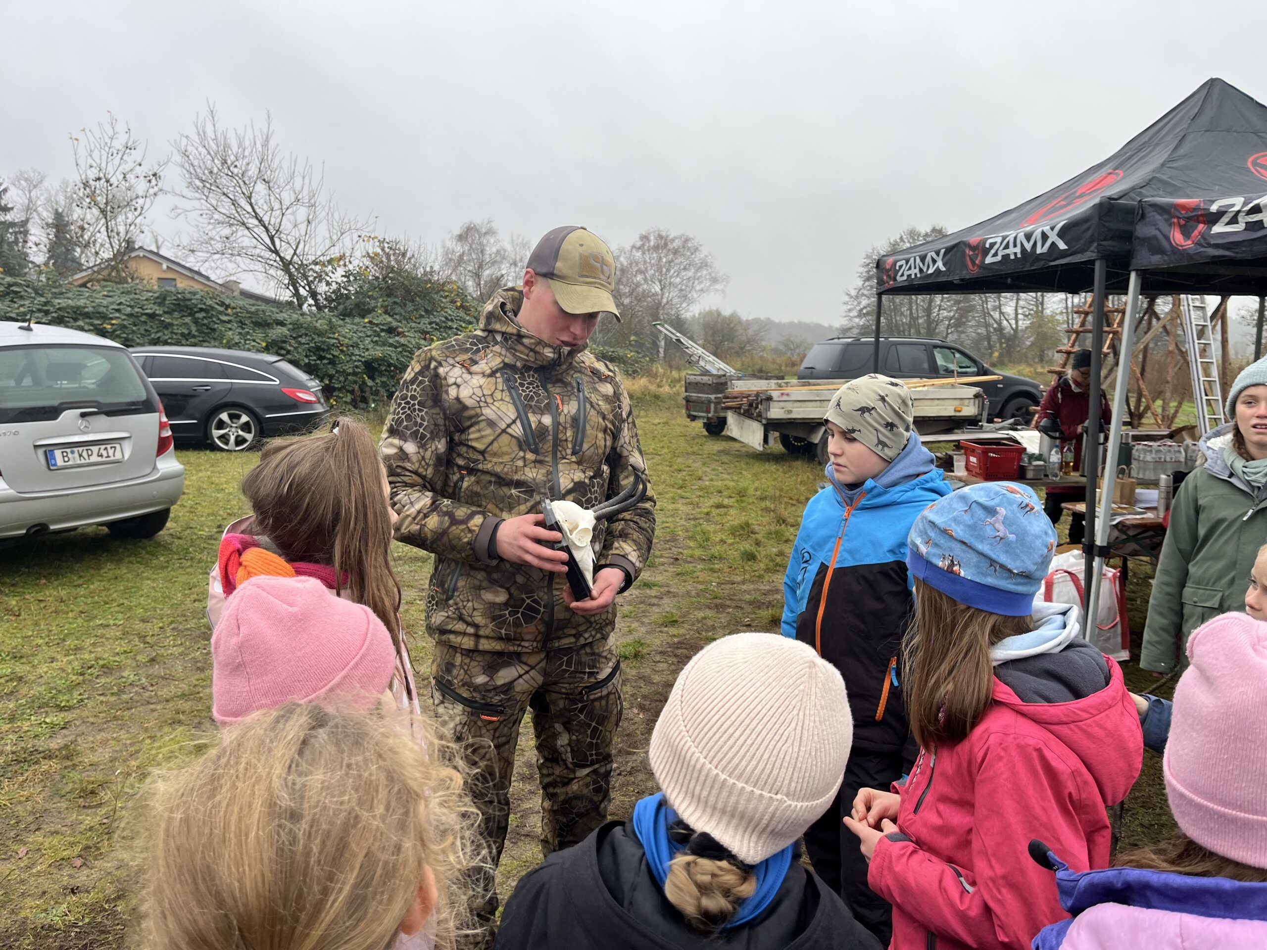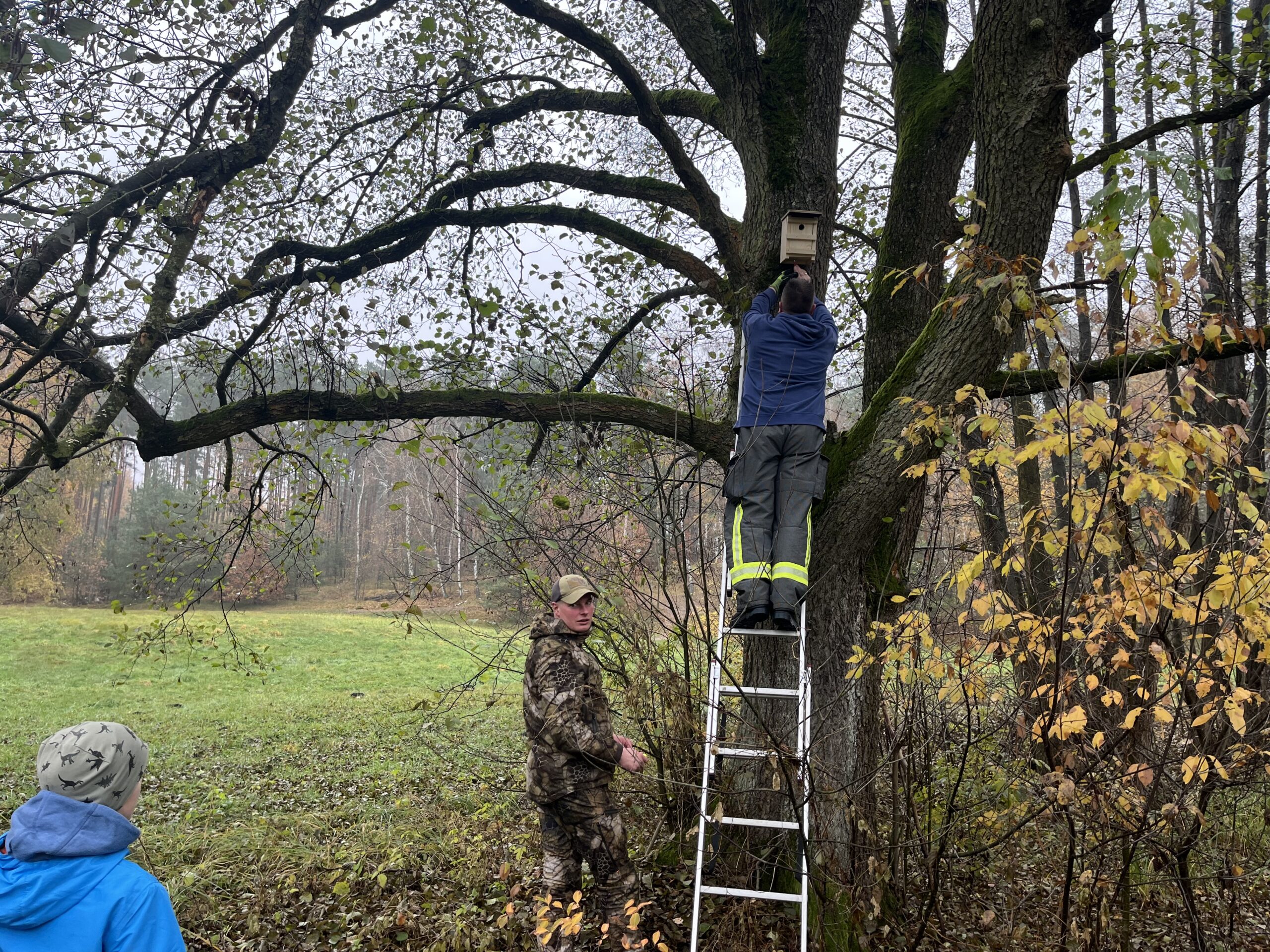 15 Kinder der Comenius Grundschule in Oranienburg haben am 11. November gemeinsam mit der Wald -und Jagdgemeinschaft Basdorf und der Freiwilligen Feuerwehr sowie Vertretern regionaler Betriebe Basdorfs in einem Waldgebiet in Barnim von den Kindern gebaute Nisthilfen für Vögel und Fledermäuse angebracht.