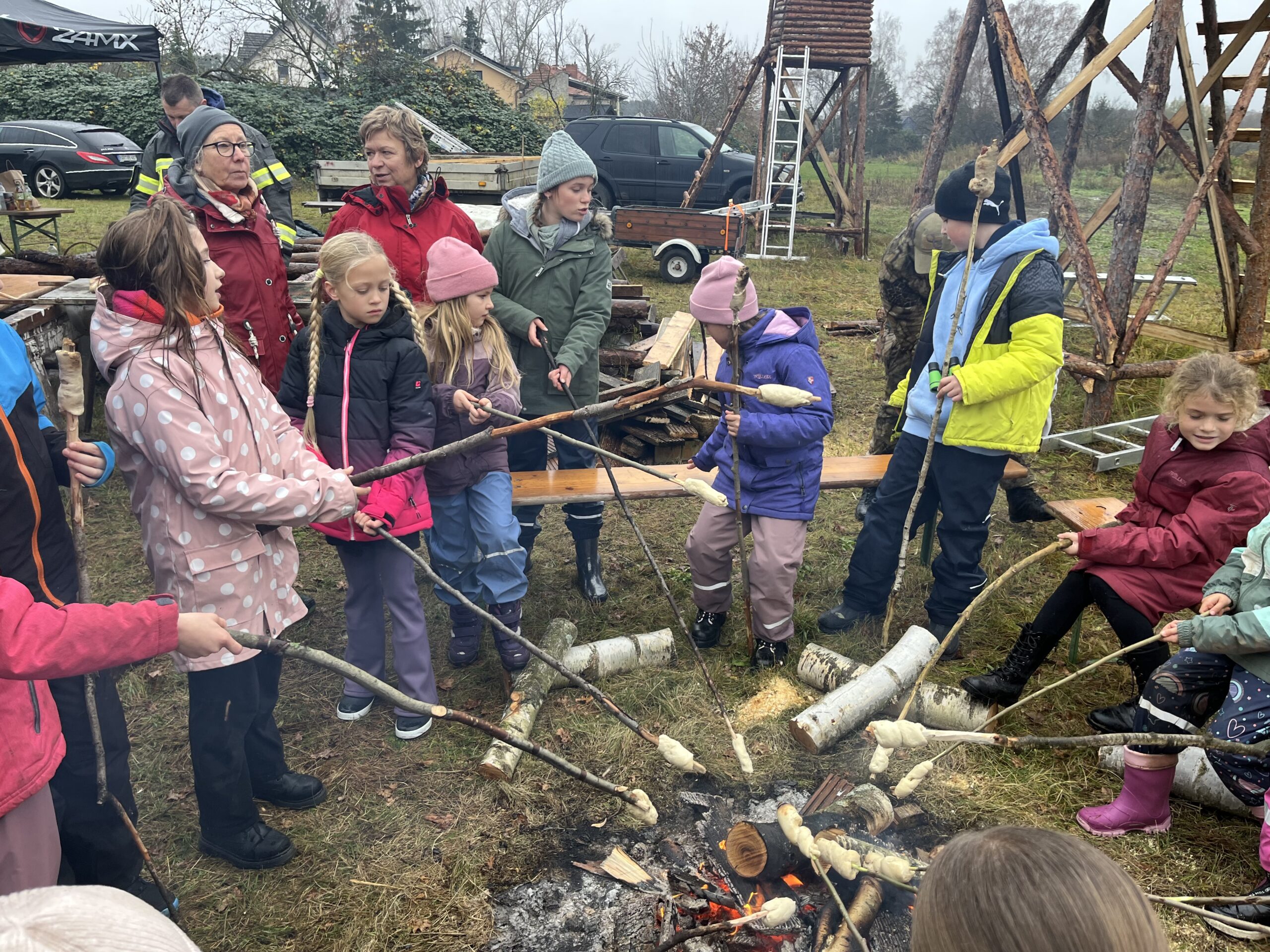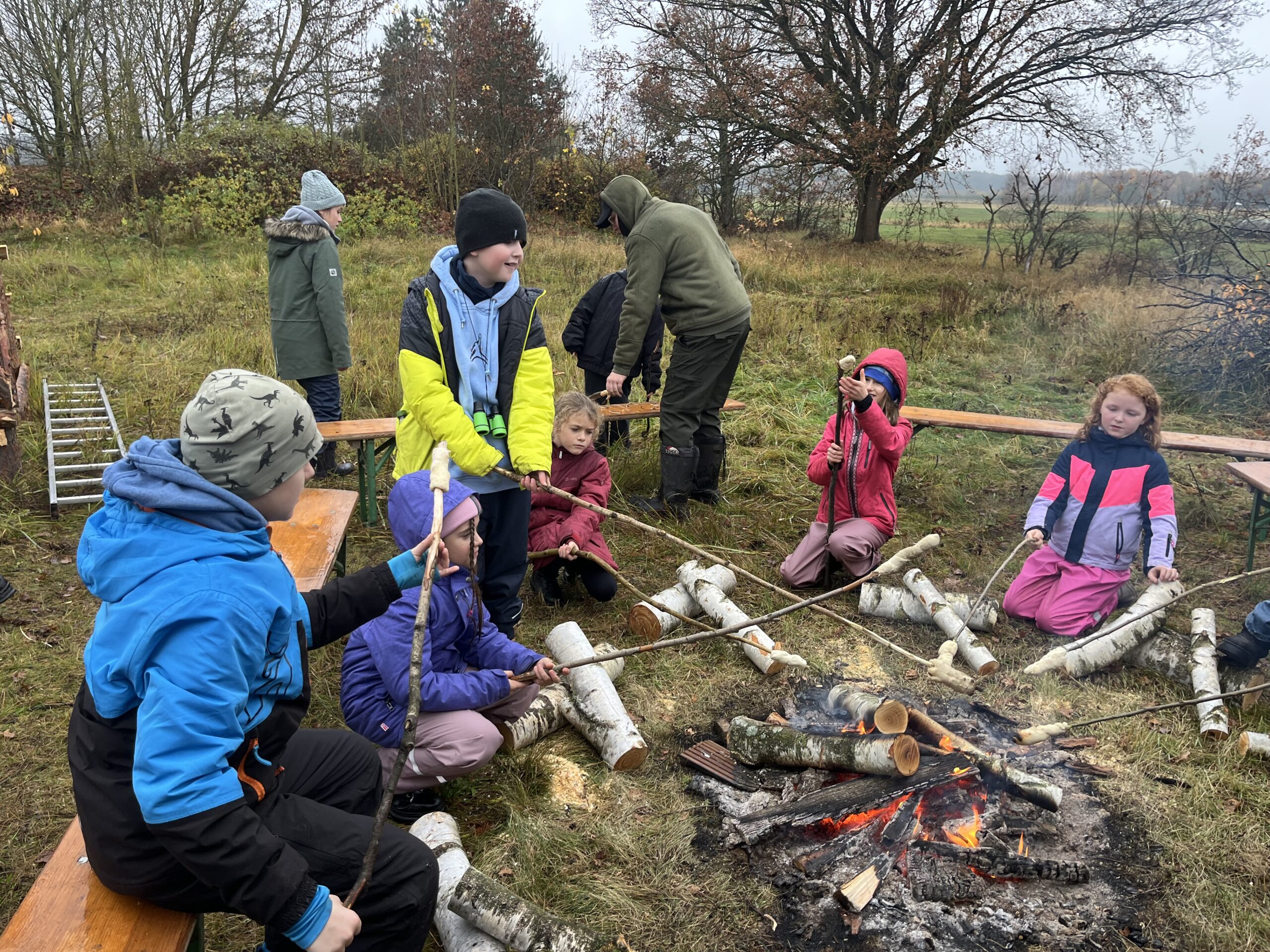 Der Höhepunkt des Projektes war für alle Teilnehmer der gemeinsame Waldausflug am Dienstag, den 11, November auf Einladung der Basdorfer Partner mit dem Anbringen der Nisthilfen und dem anschließenden fröhlichen Beisammensein am Lagerfeuer mit Stockbrot, Bratwurst vom Grill und warmen Getränken.