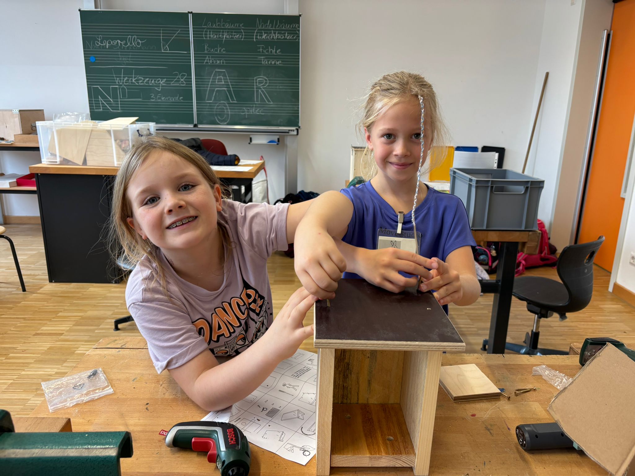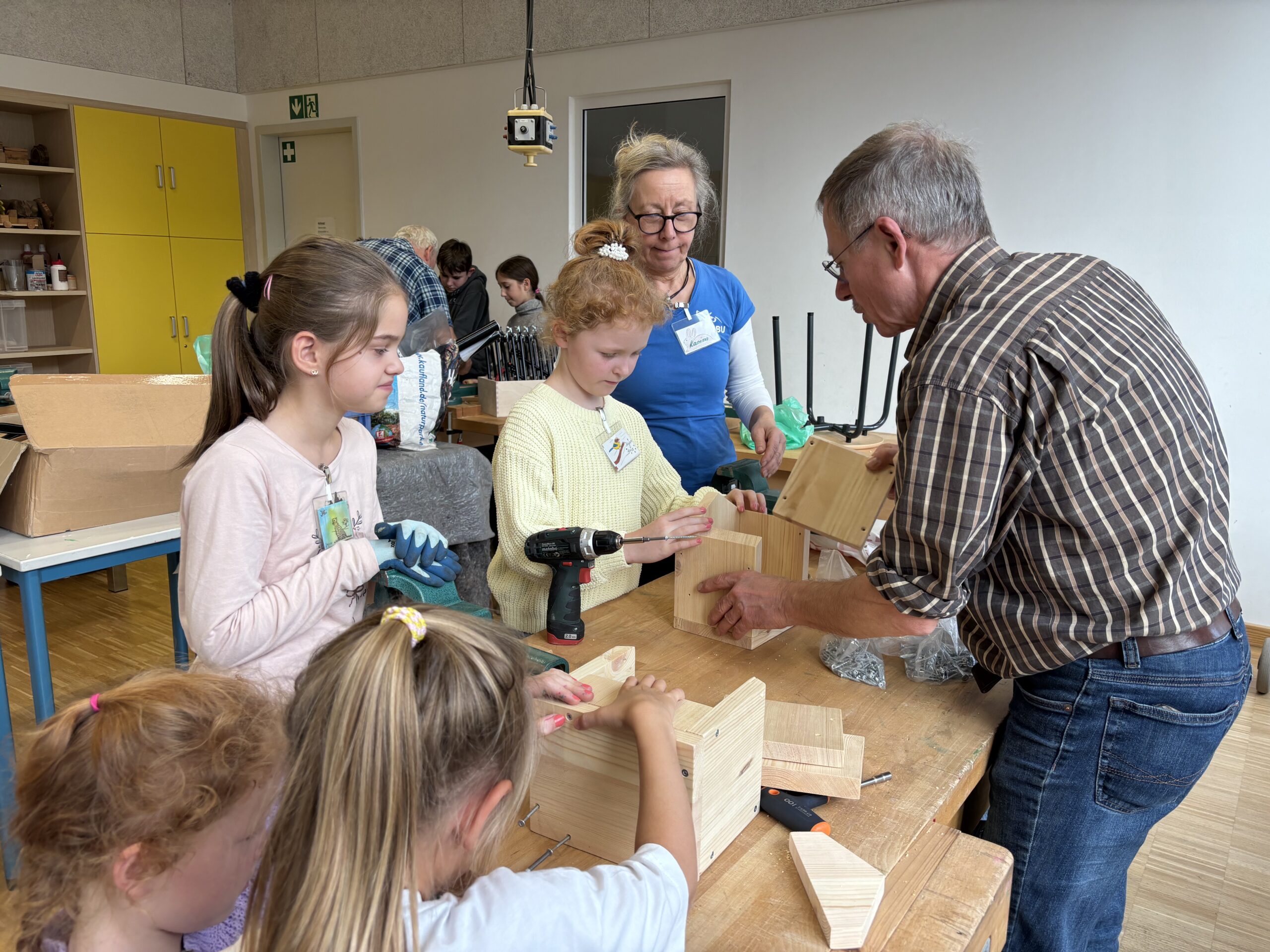 Der Zusammenbau der Nisthilfen erfolgte durch die Kinder mit viel handwerklichem Geschick und Freude unter Anleitung der Naturtrainer selbständig innerhalb ihrer Arbeitsgemeinschaft, Gleichzeitig diskutierten sie dabei auch intensiv über die zukünftigen Bewohner ihrer gebastelten Häuschen, lernten von ihnen Aussehen, Stimmen und Verhaltensweisen kennen.